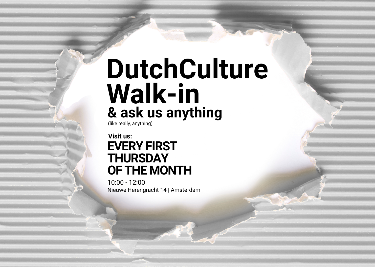 All Walk-Ins take place at DutchCulture, Nieuwe Herengracht 14, Amsterdam.