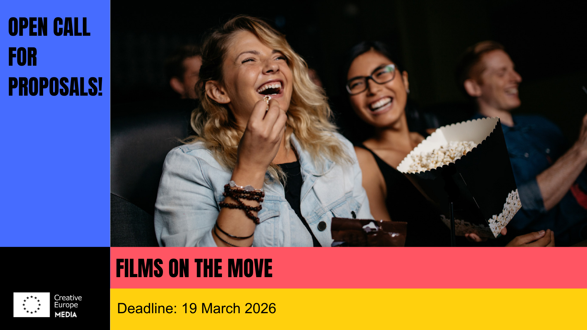 Klik hier voor de gehele call van Films on the Move op de Funding & Tending portal van de Europese Commissie. Klik hier voor tips over het doen van een aanvraag bij Creative Europe.- Online infosessie